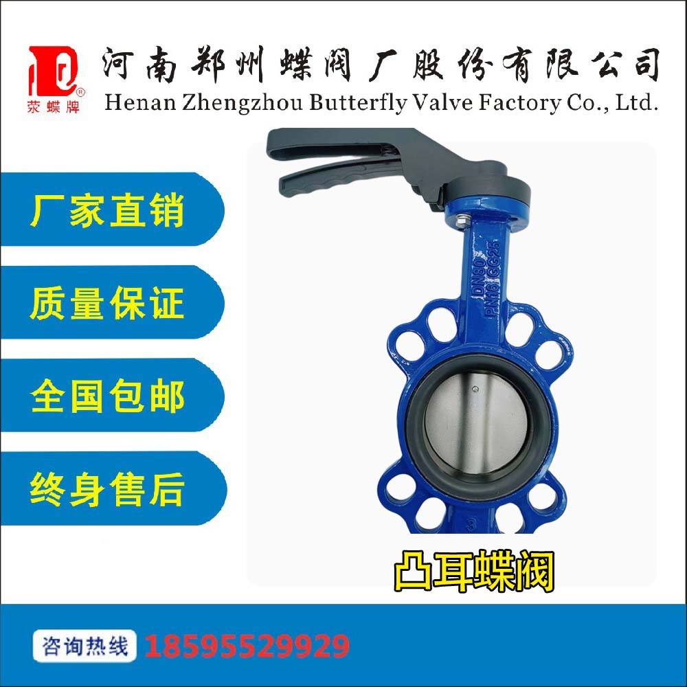 凸耳式蝶閥驅動方式可選用手動、蝸輪、氣動、電動,連接方式可選用法蘭、對夾,結構形式可選用單偏心、中線式、雙偏心、三偏心,密封結構可選用軟密封、硬密封,壓力范圍PN0.1-10Mpa,公稱通徑為DN40~2000mm,材質可選用鑄鋼、不銹鋼。由于閥門的使用范圍非常的廣泛,同一種閥門在不同的場合與工況有不同的搭配。對夾式凸耳蝶閥的蝶板安裝于管道的直徑方向。在蝶閥閥體圓柱形通道內,圓盤形蝶板繞著軸線旋轉,旋轉角度為0°-90°之間,旋轉到90°時,閥門則呈全開狀態(tài)。